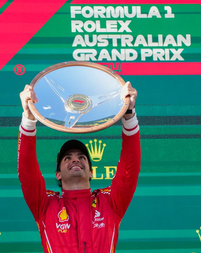 法拉利车队队员Carlos Sainz在2024一级方程式赛车2024赛季的澳大利亚站​​​​​获得冠军