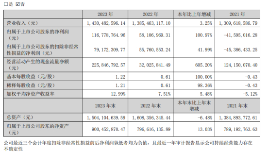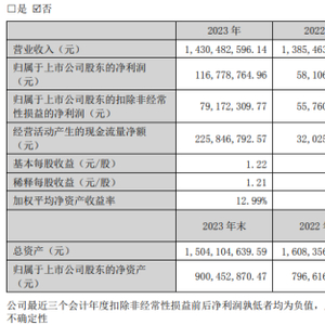 挖贝网4月28日,朝阳科技 近日发布2023年年度报告,报告期内公司实现营业收入1,430,482,596.14元,同比增长3.25%;归属于上市公司股东的净利润116,778,764.96元,同比增长100.97%。
