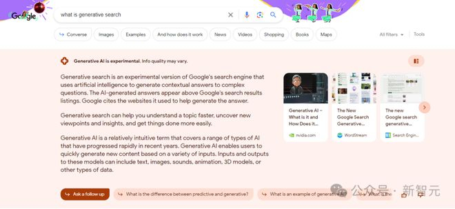 这种的主搜索结果页面上引入AI概述的搜索生成体验(SGE),谷歌已经试验一年了。