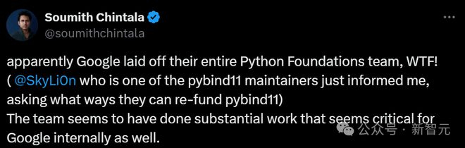 对于谷歌解散整个Python Foundations团队这件事,PyTorch之父Soumith Chintala表示极为震惊。