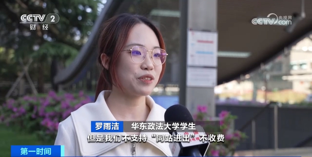 华东政法大学学生 罗雨洁:我们支持短时间内“同站进出”不收费,但是不支持“同站进出”不收费,因为这可能会导致逃票。比如,乘客可以从一站坐到另一站再坐回来,如果没有时间限制,那也是不收费的,这样不是特别合理。