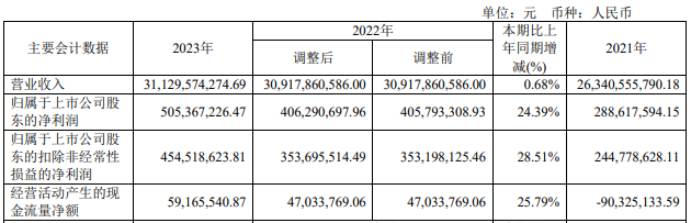 公告披露显示董事会决议通过的本报告期利润分配预案或公积金转增股本预案提取10%法定公积金,计29,188,710.99元;不提取任意公积金;扣除已实施2022年度现金分红方案派现130,522,098.96元,本次可供股东分配的利润合计1,305,023,281.28元。以实施权益分派股权登记日登记的总股本为基数,每10股派发现金红利1.28元(含税);不进行资本公积金转增股本。此预案须经公司年度股东大会审议通过。