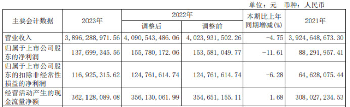挖贝网4月28日,三江购物 近日发布2023年年度报告,报告期内公司实现营业收入3,896,288,971.56元,同比下滑4.75%;归属于上市公司股东的净利润137,699,345.56元,同比下滑11.61%。