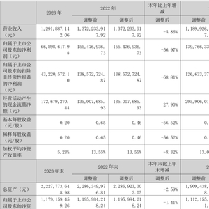 挖贝网4月28日,润都股份 近日发布2023年年度报告,报告期内公司实现营业收入1,291,887,142.06元,同比下滑5.86%;归属于上市公司股东的净利润66,898,617.98元,同比下滑56.97%。