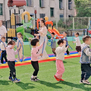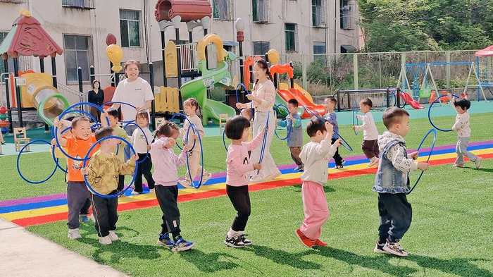 首先,教学活动展示。吴丽萍老师组织大班孩子开展了美术活动《彩蝶飞舞》,吴老师为孩子们讲解蝴蝶的形态特征和绘画技巧;孩子们用颜料、彩笔等画上了悠悠青草和五颜六色的花朵、捕捉了蝴蝶的翩翩风姿。王芳老师组织小中班的幼儿开展了混龄户外游戏,王老师将圈圈一物多玩,在欢快的音乐节奏中带领孩子们开展了“开汽车”和“趣味网小鱼”的游戏。