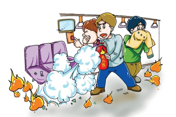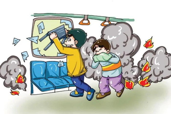 (2)关闭厢门,防止蔓延。如果火势蔓延迅速,应尽快逃至相对安全的车厢,关闭车厢门,防止火势蔓延,赢得逃离时间。
