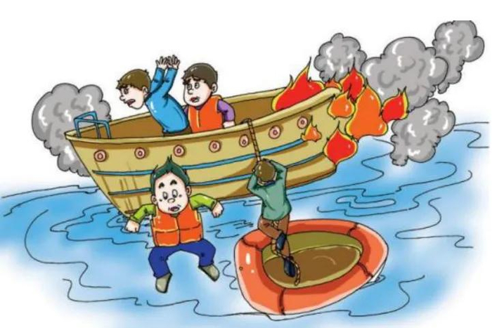 (5)防止蔓延早提醒。当客船上某一客舱着火时,逃出后应随手将舱门关上,以防止火势蔓延,并提醒相邻客舱内的旅客赶快疏散;若火势已窜出封住舱内通道时,相邻房间的旅客应关闭靠内走廊房门,从通向左右船舷的舱门逃生。