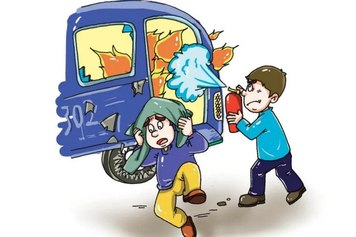 (2)及时灭火。利用车内的消防器材进行灭火,身上着火不要奔跑,就地打滚或用厚重衣物压灭。