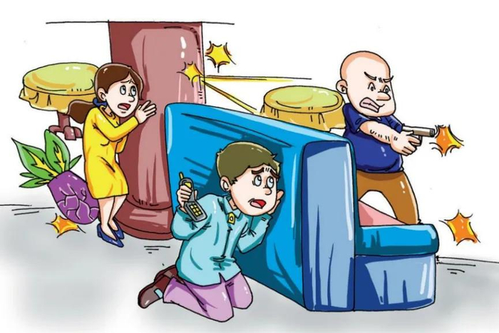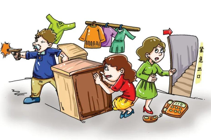 (1)快速掩蔽。要快速趴下或蹲下,掩蔽于桌子、沙发、吧台、立柱等下面或后面;在室内听到外面枪击声,不要出来观看,及时躲避在沙发后面或床侧面,不要躲避在门后或衣橱内。
