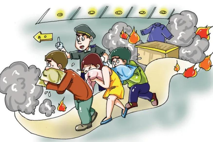 (5)科学防护。寻找简易防护物,如衣服、纸巾等捂鼻,采用弯腰姿势撤离。视线不清时手摸扶墙壁撤离。