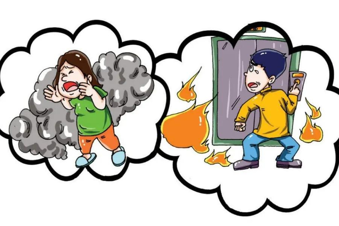 (5)忌乘坐电梯。一旦着火,电梯就会断电,可能将你困在电梯里,无法逃生。