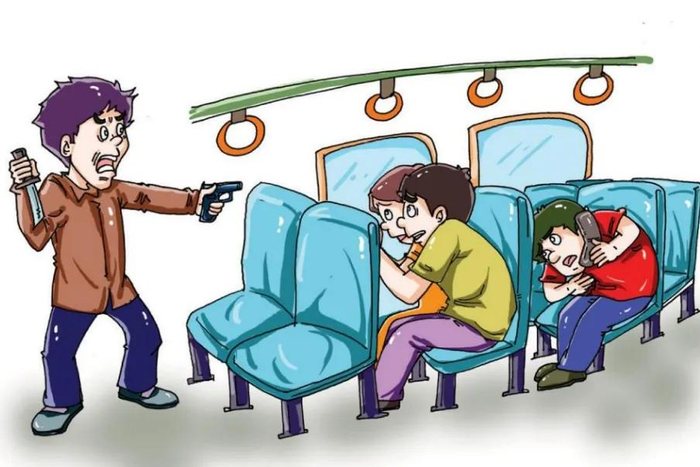 (1)快速掩蔽。在公交车上遇到枪击时,迅速低头掩蔽于前排座椅后或蹲下、趴下,不要站立。