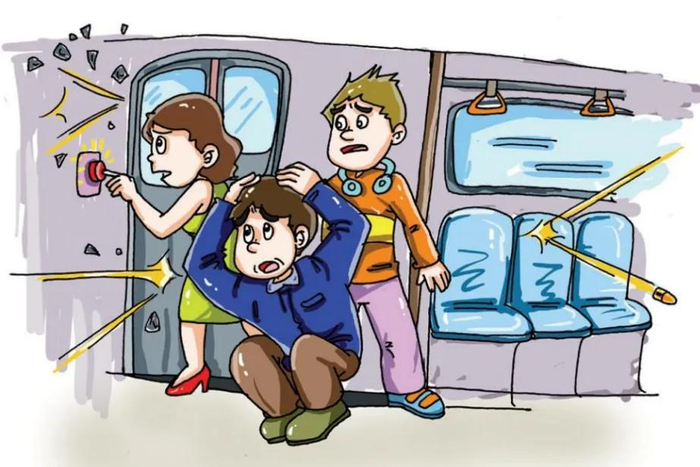 (3)谨慎行动。在情况不明,列车还在运行期间,不要有拉制动、砸窗、跳车等行为;最好先保护头部,原地蹲下。