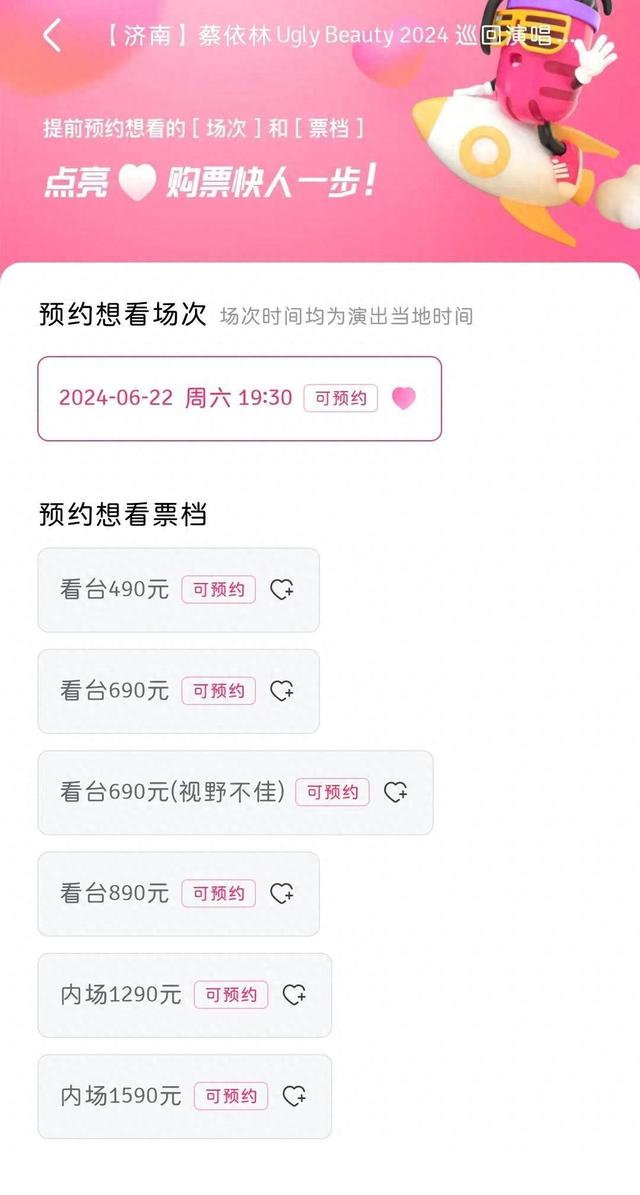 日前,大麦上架蔡依林巡回演唱会济南站、南昌站、西安站项目,三场演唱会均还未开票,但在济南站和南昌站演唱会的预约场次票档中,出现了标注为“视野不佳”的看台票,引发网友讨论。