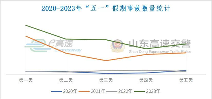 根据2020年-2023年“五一”假期事故数量统计,假期第一天及最后一天易发交通事故。