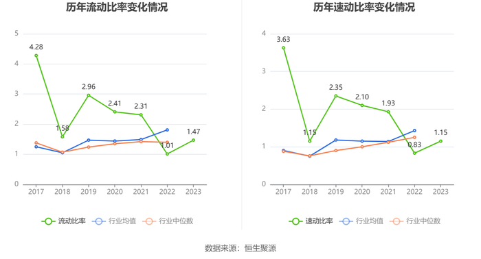 2023年,公司流动比率为1.47,速动比率为1.15。