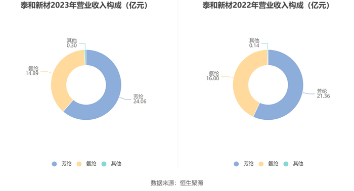 分产品看,芳纶、氨纶2023年毛利率分别为40.82%、-3.00%。