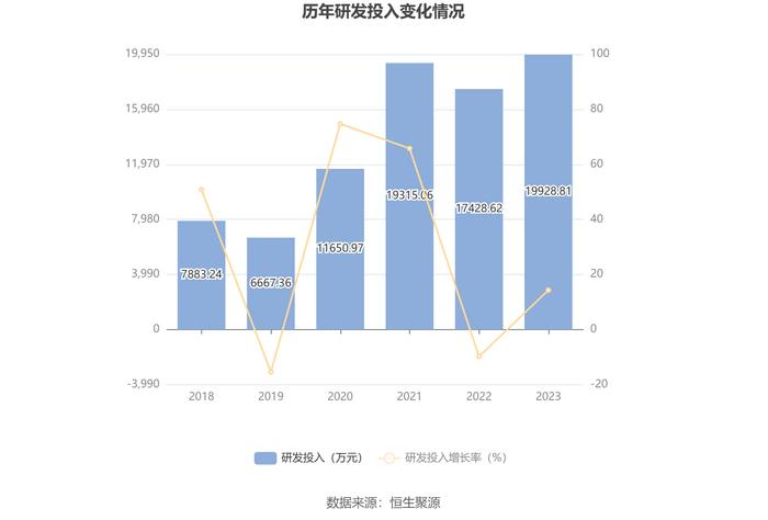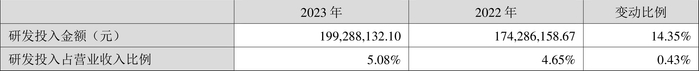 2023年全年,公司研发投入金额为1.99亿元,同比增长14.35%;研发投入占营业收入比例为5.08%,相比上年同期上升0.43个百分点。此外,公司全年研发投入资本化率为0。