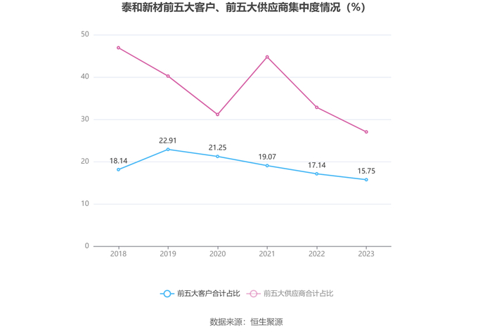 报告期内,公司前五大客户合计销售金额6.18亿元,占总销售金额比例为15.75%,公司前五名供应商合计采购金额13.87亿元,占年度采购总额比例为27.05%。