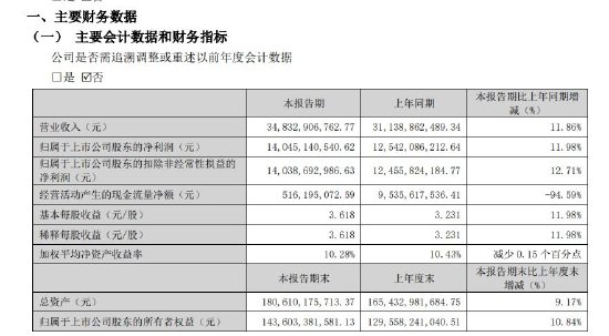 【五粮液:一季度净利润同比增长11.98% 2023年拟10派46.7元】五粮液披露一季报,2024 年第一季度营收348.33亿元,同比增长11.86%;归母净利润140.45亿元,同比增长11.98%。同日披露年度报告,2023年净利润302.1亿元,同比增加13.19%,拟10派46.70元。