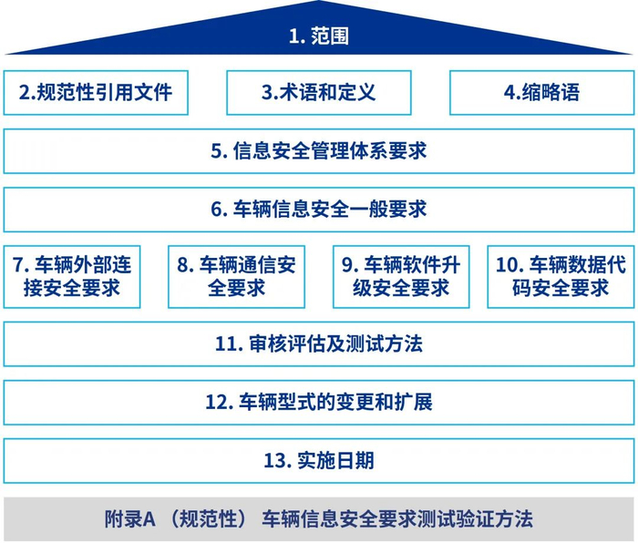 在车辆安全方面,《汽车整车信息安全技术要求》(征求意见稿)规定车辆信息安全一般要求、车辆外部连接安全要求、车辆通信安全要求、车辆软件升级安全要求和车辆数据代码安全要求,同时提供了车辆信息安全要求测试验证方法。