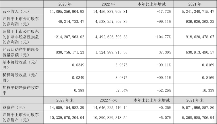 挖贝网4月28日,雅化集团 近日发布2023年年度报告,报告期内公司实现营业收入11,895,256,904.92元,同比下滑17.72%;归属于上市公司股东的净利润40,214,723.47元,同比下滑99.11%。