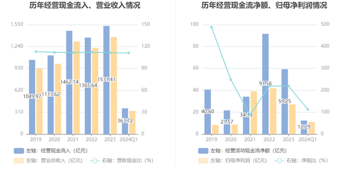 2024年第一季度,公司营业收入现金比为111.16%,净现比为112.07%。