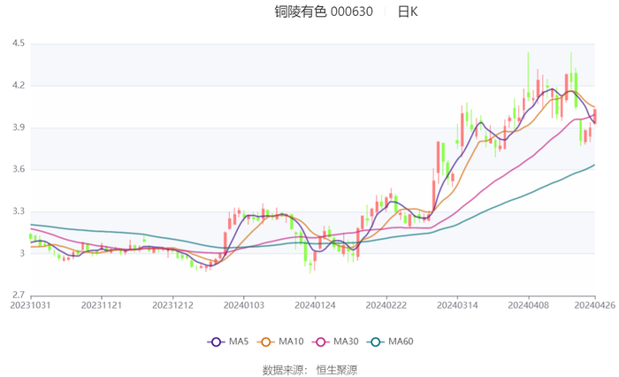 铜陵有色:2024年第一季度净利润10.97亿元 同比增长7.39%