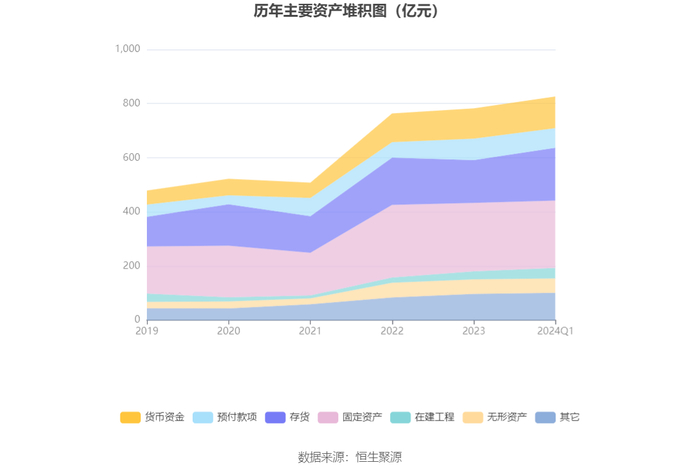 资产重大变化方面,截至2024年一季度末,公司存货较上年末增加23.65%,占公司总资产比重上升3.44个百分点;固定资产较上年末减少1.78%,占公司总资产比重下降2.27个百分点;预付款项较上年末减少8.54%,占公司总资产比重下降1.36个百分点;在建工程较上年末增加32.14%,占公司总资产比重上升0.94个百分点。