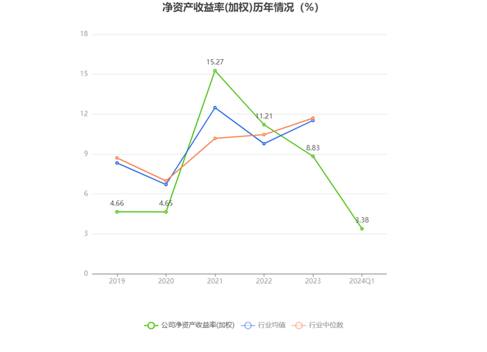 数据显示,2024年第一季度公司加权平均净资产收益率为3.38%,较上年同期增长0.04个百分点;公司2024年第一季度投入资本回报率为2.29%,较上年同期增长0.77个百分点。