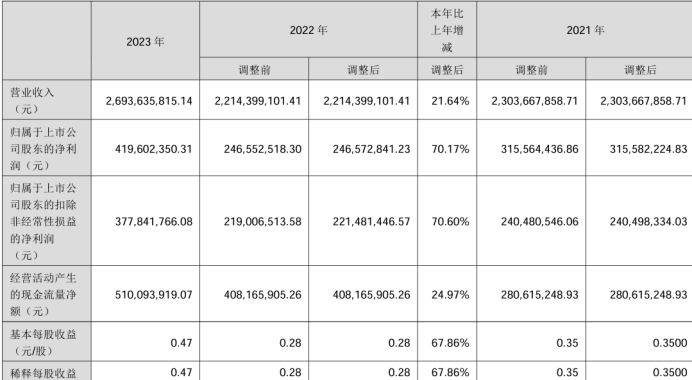 挖贝网4月28日,漫步者 近日发布2023年年度报告,报告期内公司实现营业收入2,693,635,815.14元,同比增长21.64%;归属于上市公司股东的净利润419,602,350.31元,同比增长70.17%。