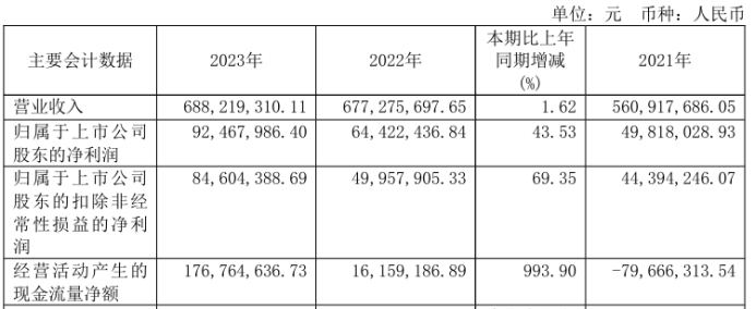 挖贝网4月28日,克来机电 近日发布2023年年度报告,报告期内公司实现营业收入688,219,310.11元,同比增长1.62%;归属于上市公司股东的净利润92,467,986.40元,同比增长43.53%。
