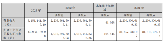挖贝网4月28日,拓维信息 近日发布2023年度报告,报告期内公司实现营业收入3,154,141,699.10元,同比增长41.02%;归属于上市公司股东的净利润44,963,139.28元,较上年同期扭亏为盈。