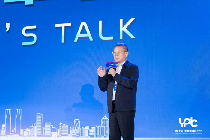 苏州弘道新材料有限公司创始人&董事长&总经理王同心以《四大封装材料技术推动光伏组件第三次革命》为主题介绍了苏州弘道的产品和他对光伏内卷现状如何破局的思考。他认为,近二十余年的光伏技术发展史中,有过两次革命,一次是尺寸革命,第二次是效率革命,前两次革命方向都是增进发电单元的效能,是Y轴上的革新,正在进入X轴上的第三次革命,通过材料本身的技术革新带来更丰富和多元的收益,封装材料在这次革命中将成为重要一环。封装材料的三大发展方向是功能化、薄膜化和低碳化。苏州弘道以“通过材料创新解决新能源痛点问题”为企业使命。以解决新型高效电池紫外敏感等问题而研发的特种胶膜解决方案为例,苏州弘道为TOPCon提供低腐蚀胶膜,为HJT提供转光胶膜,为钙钛矿提供热塑性胶膜。他说,就碳排放来说,玻璃和目前的边框材料事实都属于高碳排放材料,如果采用轻质+无边框的封装方式,碳排放量约为双玻+铝边框封装的一半。