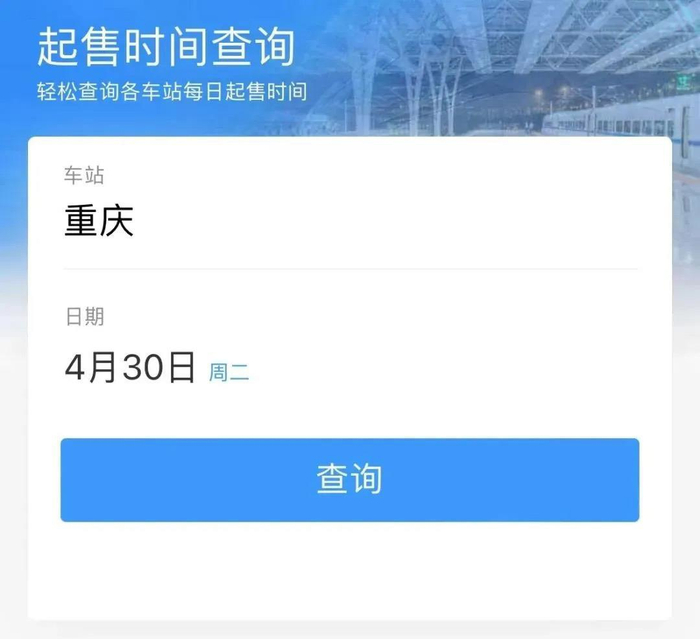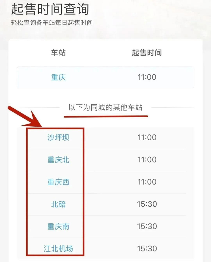 第三步:系统将显示【重庆】各车站的起售时间信息