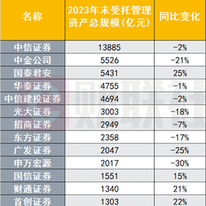 根据基金业协会此前公布的统计,截至2023年末,证券公司及其资产管理子公司管理业务规模约为7.83万亿元,较2022年末降低10.76%。从近期各券商披露的2023年年报透露的资管数据来看,其资产管理规模普遍下降,但也不乏逆势增长的券商。