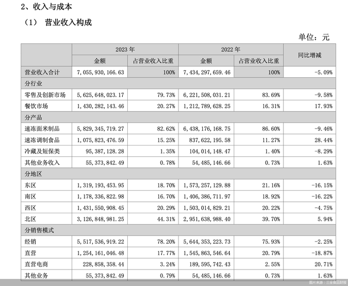 速冻面米销量下滑,三全食品上市以来营收首降