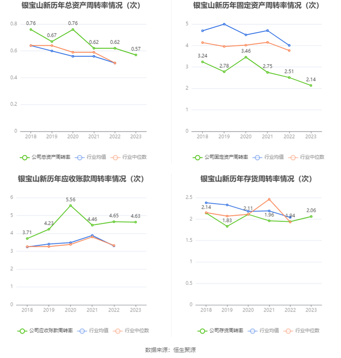 营运能力方面,2023年,公司公司总资产周转率为0.57次,上年同期为0.62次(2022年行业平均值为0.51次,公司位居同行业27/87);固定资产周转率为2.14次,上年同期为2.51次(2022年行业平均值为4.01次,公司位居同行业60/87);公司应收账款周转率、存货周转率分别为4.63次、2.06次。