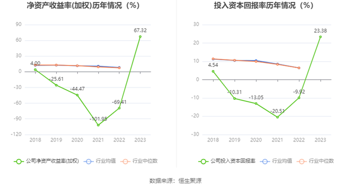 数据显示,2023年公司加权平均净资产收益率为67.32%,较上年同期增长136.73个百分点;公司2023年投入资本回报率为23.38%,较上年同期增长33.30个百分点。