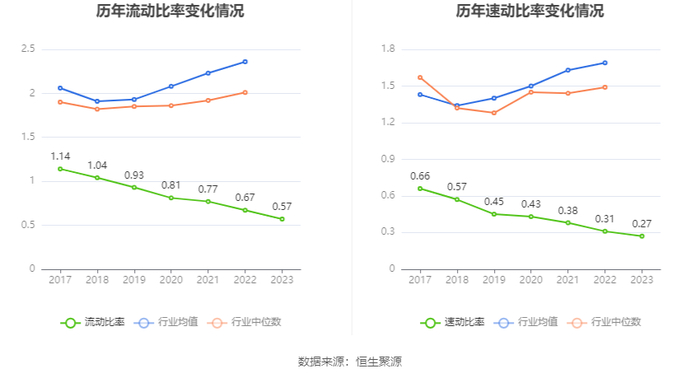 2023年,公司流动比率为0.57,速动比率为0.27。