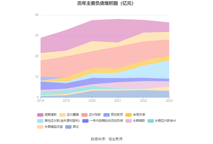 负债重大变化方面,截至2023年年末,公司其他应付款(含利息和股利)较上年末增加48.08%,占公司总资产比重上升6.58个百分点;应付账款较上年末减少19.57%,占公司总资产比重下降5.19个百分点;短期借款较上年末减少26.42%,占公司总资产比重下降4.40个百分点;长期递延收益较上年末增加241.98%,占公司总资产比重上升3.50个百分点。