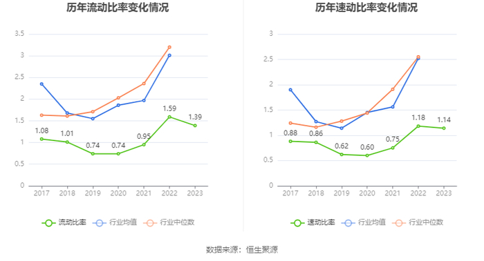 2023年,公司流动比率为1.39,速动比率为1.14。