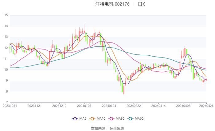 中证智能财讯 江特电机(002176)4月29日披露2023年年报。2023年,公司实现营业总收入27.99亿元,同比下降57.41%;归母净利润亏损3.97亿元,上年同期盈利23.26亿元;扣非净利润亏损5.01亿元,上年同期盈利23.12亿元;经营活动产生的现金流量净额为5.82亿元,同比下降68.13%;报告期内,江特电机基本每股收益为-0.23元,加权平均净资产收益率为-9.82%。
