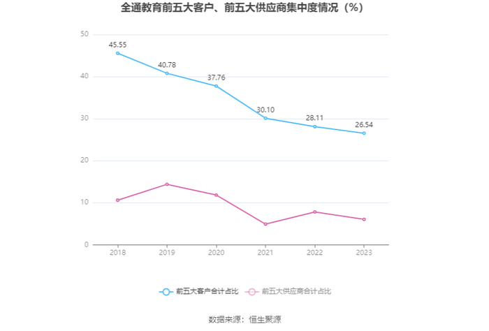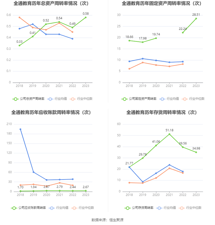 数据统计显示,全通教育近三年营业总收入复合增长率为-3.84%,在培训教育行业已披露2023年数据的8家公司中排名第6。近三年净利润复合年增长率为-51.51%,排名6/8。