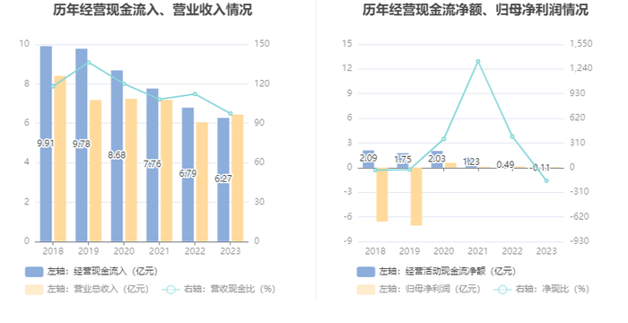 2023年,公司营业收入现金比为97.43%,净现比为-166.49%。