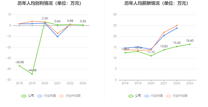 截至2023年末,公司员工总数为1159人,人均创收55.55万元,人均创利0.56万元,人均薪酬16.40万元,较上年同期分别变化18.11%、-43.14%、6.55%。