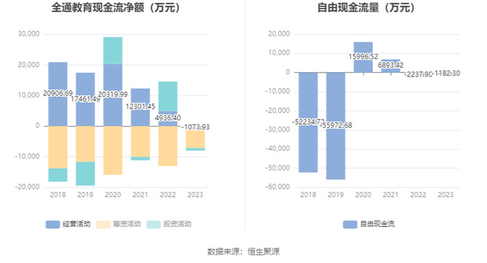 进一步统计发现,2023年公司自由现金流为-1182.30万元,上年同期为-2237.90万元。