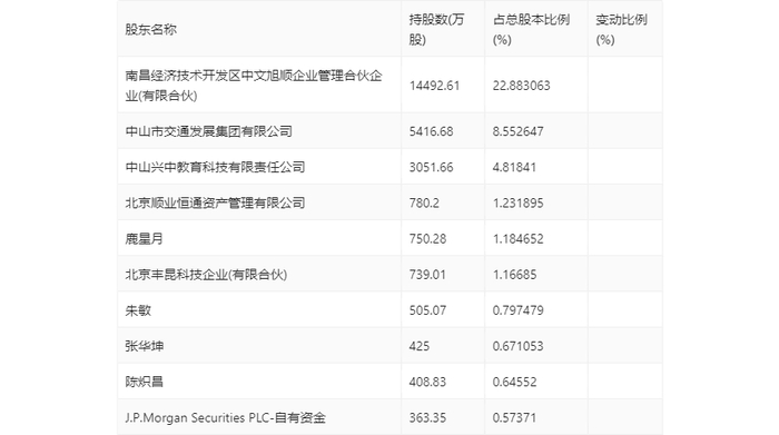年报显示,2023年年末公司十大流通股东中,新进股东为J.P.Morgan Securities PLC-自有资金,取代了三季度末的大成中证360互联网+大数据100指数型证券投资基金。在具体持股比例上,南昌经济技术开发区中文旭顺企业管理合伙企业(有限合伙)持股有所上升,陈炽昌持股有所下降。