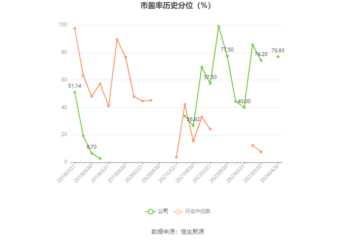 市盈率为负时,不显示当期分位数,会导致折线图中断。