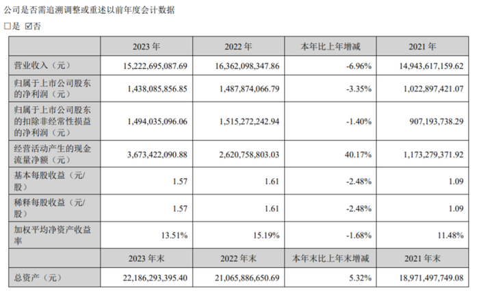 报告期内经营活动产生的现金流量净额为3,673,422,090.88元,截至2023年末归属于上市公司股东的净资产11,051,570,184.77元。